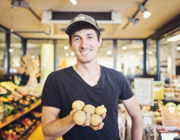 Neben Getreide und Eiern bietet der Biohof Weyer auch frische Kartoffeln an. Das Besondere daran: Familie Weyer setzt auf alte Sorten und erntet immer nur kleine „Zillten“, statt alles auf einmal zu roden. Diese schonende Praxis bringt Kartoffeln von herausragender Qualität hervor, die sowohl lose als auch in praktischen 2-kg-Tüten erhältlich sind.